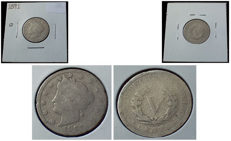 Item: 1891 Liberty Head "V" - A Mint Mark: None Condition: AG Information: john@klipit.com